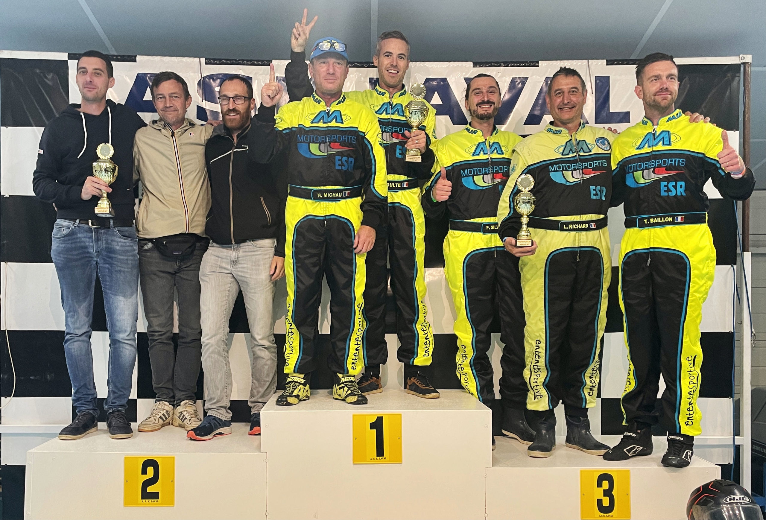 KART ACCESS (Théau KERYJAOUEN – Maxime LELLIG – Florent RICHARD) en tête depuis plus de 30 tours remporte ainsi les 6 Heures de Laval devant MRK 3 (Alizée GUILMAIN – Olivier PARIS) et MRK 1 (Flavio HERITEAU – Kevin MERCIER) formant également le podium KFS 145.