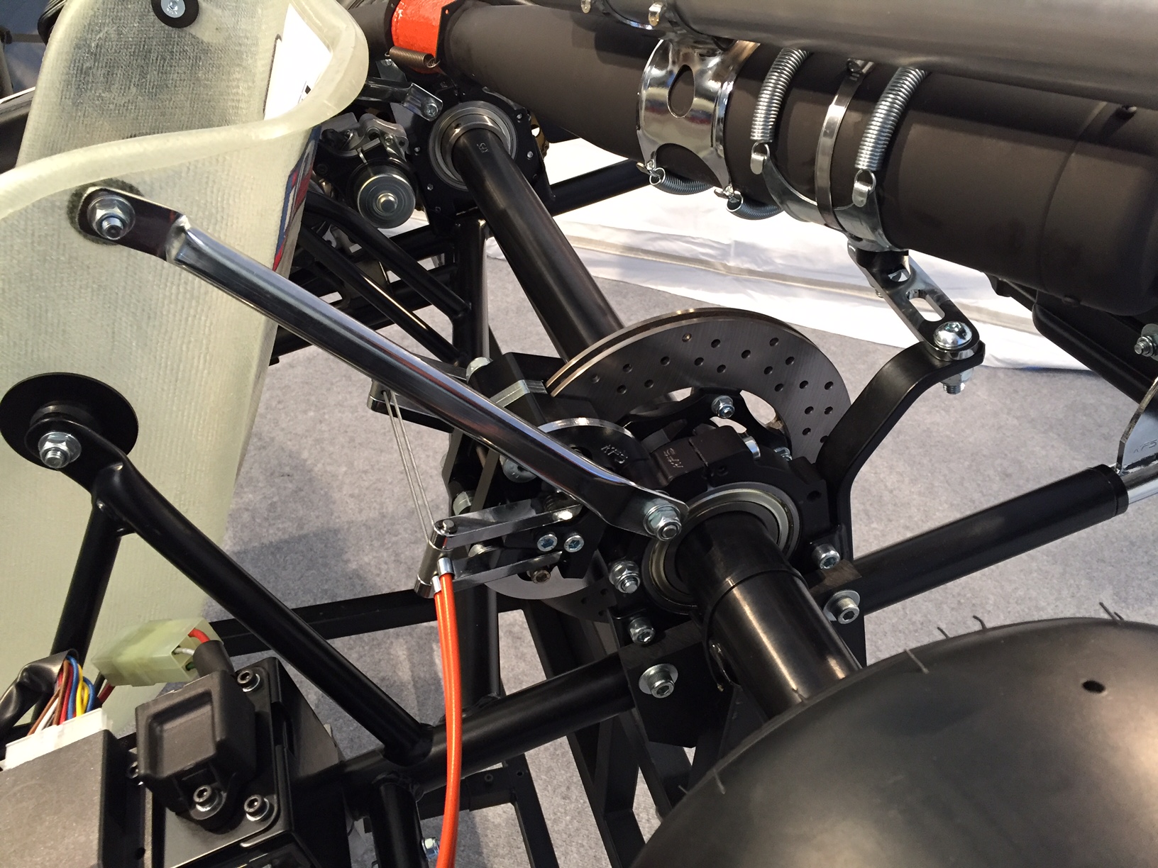 L’arbre de Ø30 disparait au profit d’un arbre de Ø50, cette nouvelle ligne arrière sera plus adaptée aux nouveaux pneus et offrira un gain de motricité et de stabilité, par conséquent, plus de plaisir à piloter. Cette évolution permet aussi au KFS de rentrer dans le « standard » du karting actuel et le rend plus attrayant, étape indispensable au bon développement de la catégorie.